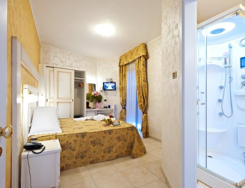 L'hotel dispone di 75 camere con balcone e vista sul mare, dotate di aria condizionata, cassaforte, telefono, TV color, minibar, connessione Wi-Fi a Internet, bagno privato con asciugacapelli.