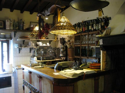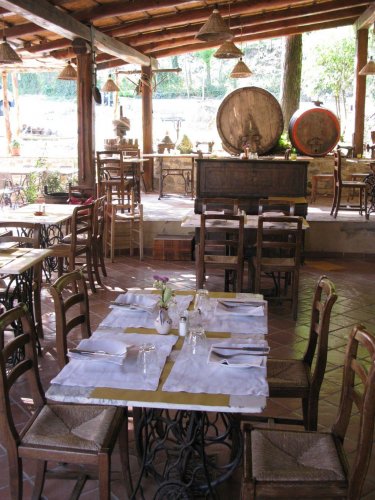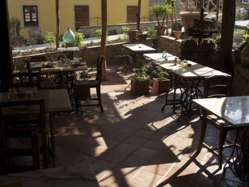 In primavera e estate è aperto lo splendido pathio esterno arredato con tavoli in marmo, mentre in inverno è possibile mangiare nella bellissima sala interna con camino.