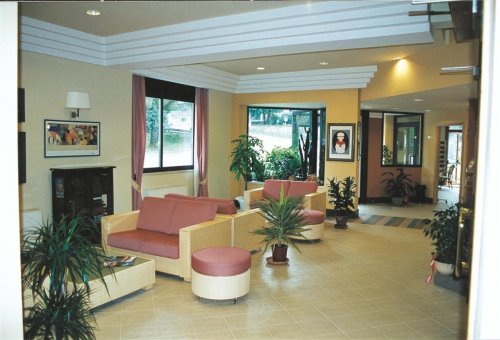 Sala colazioni con veranda adiacente al giardino. Ampia hall, saletta tv, bar. Tutti i locali comuni sono climatizzati.