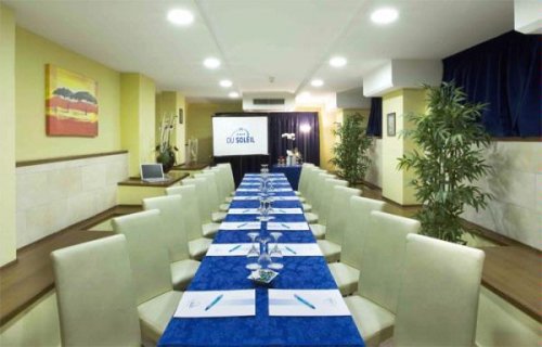 L'Hotel Du Soleil dispone di 2 capienti sale meeting - la Sala Topazio e la Sala Zaffiro - ideali per la realizzazione di riunioni, congressi, meeting e corsi azienzali da 10 a 132 posti.