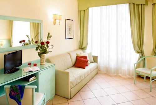 Le camere sono dotate di TV color satellitare, telefono, cassaforte, frigobar, aria condizionata e asciugacapelli.