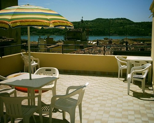 Alcune camere dispongono di balcone con vista sul lago o sulla collina.