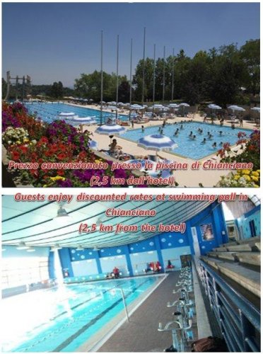 La gestione familiare garantisce ospitalità e cortesia e gli ospiti avranno a loro disposizione un comodo parcheggio, un verde giardino, un fornito bar, sala TV, ascensore, aria condizionata, Internet Point e collegamento Wi-Fi a Internet gratuiti, solarium e terrazzo panoramico, convenzioni con il centro Terme Sensoriali e Terme di Montepulciano. Sono inoltre disponibili pacchetti benessere e informazioni sui sui possibili itinerari per effettuare visite nei vicini Paesi della Val d'Orcia.