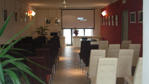 La sala riunioni è l'ideale per incontri di lavoro e meeting di ogni tipo, con una capienza massima di 50 persone e dotata di un moderno e funzionale materiale audio visivo.