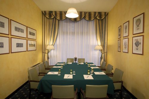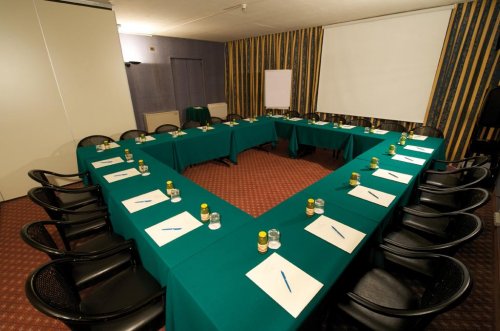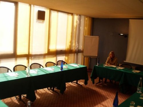 L'hotel dispone di una sala meeting modulabile per una capienza massima di 50 persone e dotata di illuminazione naturale, video-proiettore, lavagna luminosa, TV color e VCR.