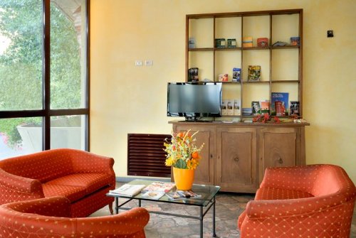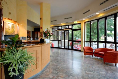 L'elegante Hall dell'albergo accoglie gli ospiti in ambiente raffinato ed elegante, con uno spazio dedicato alla lettura delle riviste e un comodo angolo con TV per i momenti di svago.