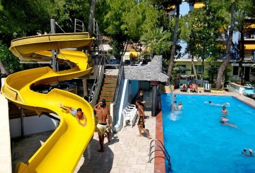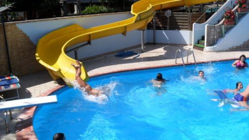 All'esterno sono disponibili ampi spazi per il gioco, una grande piscina per adulti e bambini, acquascivolo, Solarium attrezzato con lettini, area fitness per mantenersi in forma anche durante le vacanze.