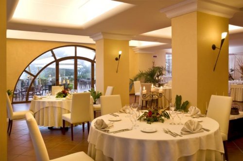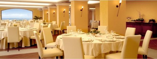 Nell'ampia sala con terrazzo attiguo, gli ospiti potranno scegliere tra le specialità di un ricco menu alla carta che varia con il variare delle stagioni.