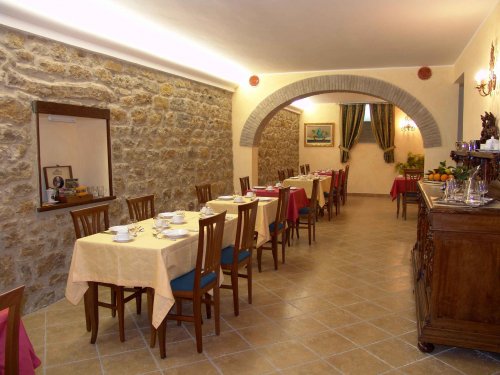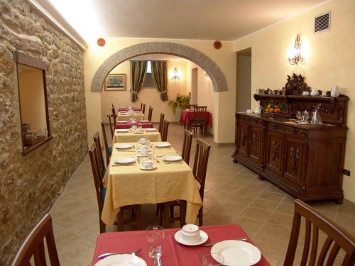 La saletta per la prima colazione, situata nel piano sottostante, offre al mattino un ricco buffet con prodotti tipici dolci e salati.
