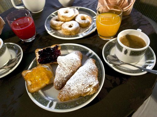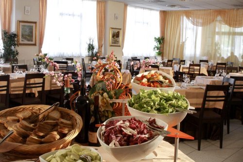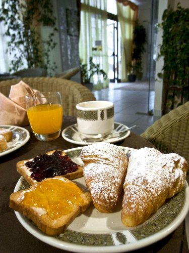 La prima colazione a buffet soddisfa ogni singolo ospite e rende gradevole il soggiorno.