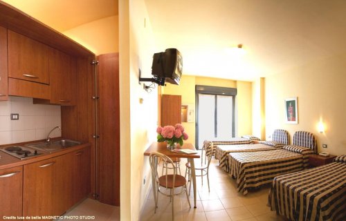 Sono disponibili monolocali e bilocali completamente arredati con angolo cottura attrezzato, frigo, telefono, TV color satellitare, canali Sky, minibar, linea ADSL ad alta velocità, aria condizionata, bagno privato con doccia.