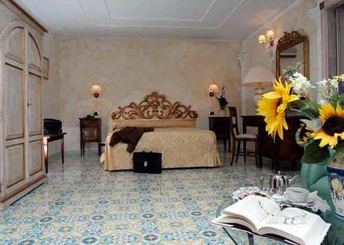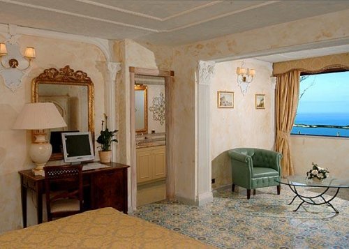 Le Suite sono camere di 30 mq con angolo soggiorno, doppia vetrata vista mare, bagno con idromassaggio e mobilio di pregio.
