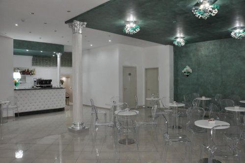 La hall, il bar e il ristorante sono in elegante stile neoclassico. Il corridoio che immette alle camere è arredato con piante