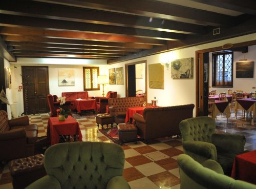 L'albergo si trova alla fine della calle sulla destra, dopo aver attraversato un ponticello con sottoportico.
