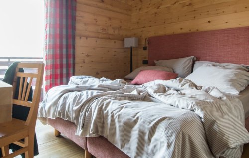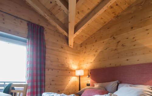 Le camere da letto sono arredate con mobili in pino e hanno pavimenti di legno.