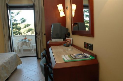 L’hotel dispone di 84 camere dotate di aria condizionata, telefono con linea diretta, ampio balcone, TV color satellitare, cassaforte, frigo bar, servizi privati con vasca o doccia e asciugacapelli.