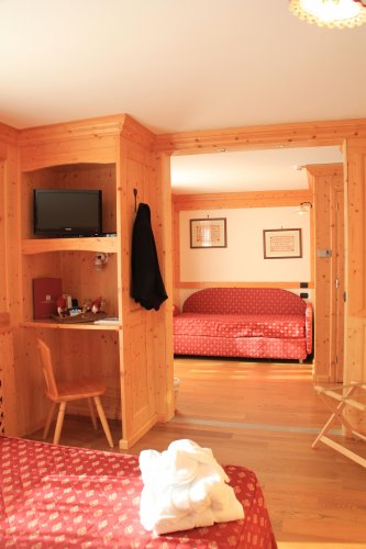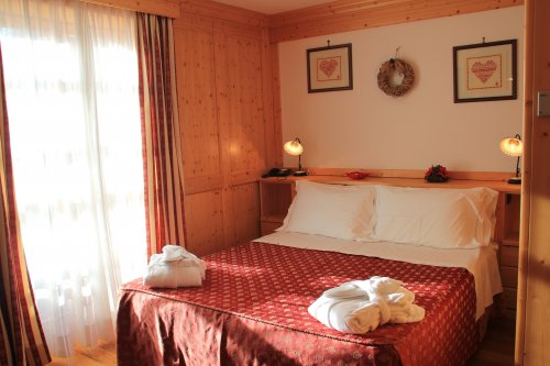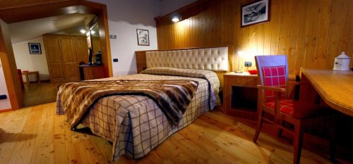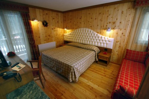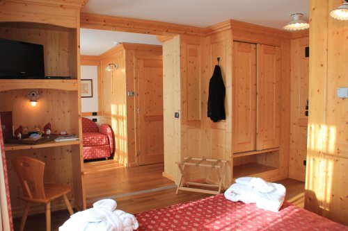 Le camere sono tutte arredate in stile montano con parquet, boiserie e tessili dai caldi colori. Dispongono di frigo bar e cassaforte.