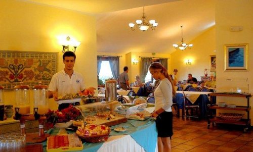 Durante la bella stagione la cena viene servita all'aperto nel bellissimo portico dell'albergo, dove il calore tenue delle candele e il rumore del mare fanno da contorno ai piacevoli momenti del ristoro serale.