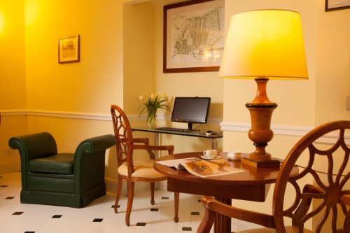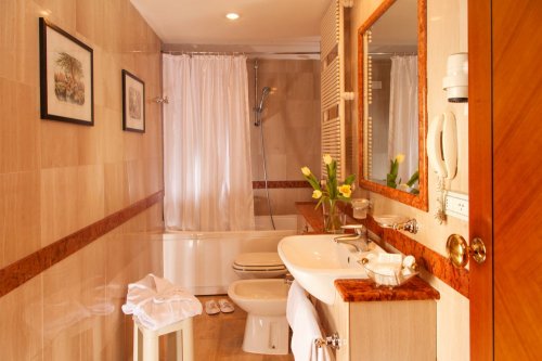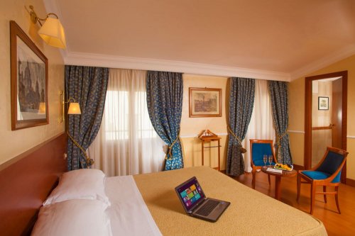 Le camere, spaziose ed eleganti, sono dotate di TV color satellitare, aria condizionata, telefono con linea diretta anche nel bagno, connessione Wi-Fi a Internet, minibar, cassaforte e bagno privato con accappatoi di spugna e asciugacapelli.