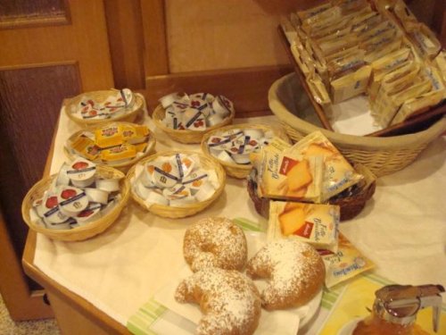 La direzione offre ogni mattina un ricco buffet per la prima colazione a base di succhi di frutta, cornflakes, marmellate, burro, formaggio, pane tostato, frutta sciroppata, yogurt e brioches appena sfornate. Su richiesta sono disponibili alnche salumi e formaggi.