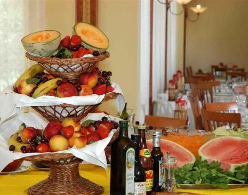 Al mattino, in una graziosa sala affacciata sul giardino, viene servito il delizioso buffet per la prima colazione a base di caffè espresso, cappuccino, succhi di frutta, marmellata, biscotti, torte, frutta, croissant caldi, toast, uova, bacon, wurstel e pasticceria locale.