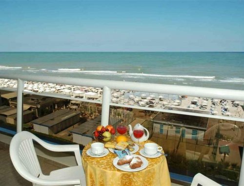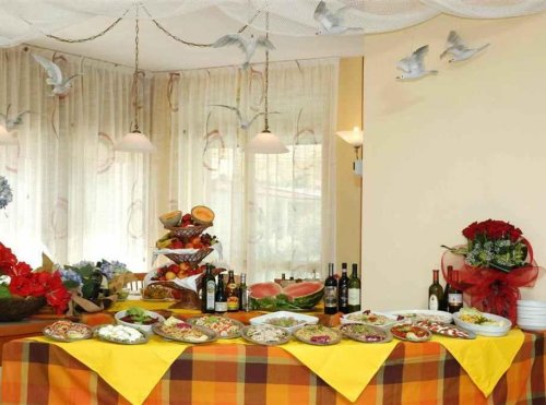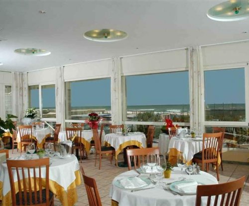 Il Ristorante con vista sul mare propone squisiti piatti della cucina emiliana e romagnola insieme alle ricette della cucina internazionale, con un ampio assortimento di antipasti caldi e freddi a buffet.