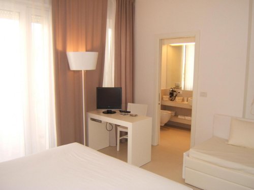 Le eleganti camere da letto sono provviste di ampio balcone con vista sul mare, TV color satellitare, Sky TV, cassaforte, telefono, connessione Wi-Fi a Internet, aria condizionata e riscaldamento autonomi.