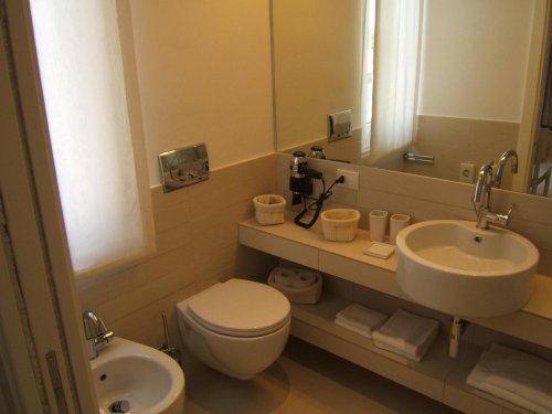 I bagni sono dotati di box doccia, asciugacapelli, ottima illuminazione, specchio ingranditore e ricco set di cortesia.