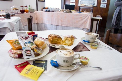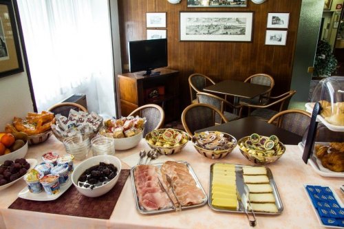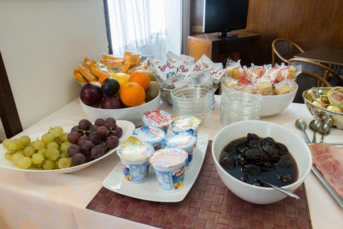 La ricca prima colazione continentale a buffet, che varia dal dolce al salato alla frutta, viene servita nell'apposita sala.