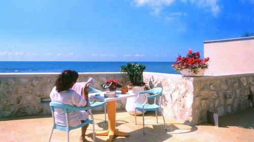 Il piccolo ristorante è in veranda di fronte al mare e propone piatti tipici di cucina siciliana.
