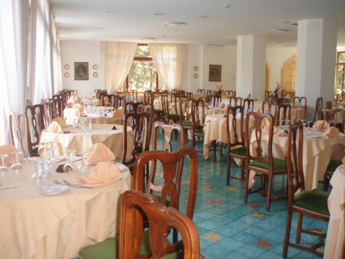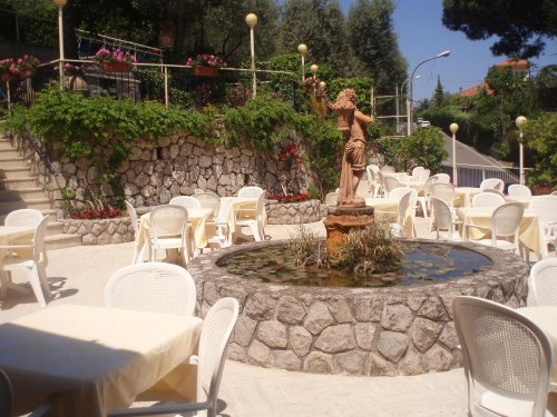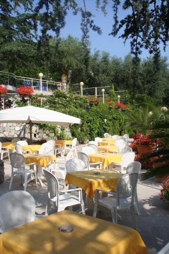 Il ristorante propone una cucina tradizionale e piatti classici italiani da gustare sulla terrazza soleggiata durante l'ora di pranzo.
