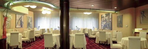 Nell'elegante sala colazione decorata con dipinti d'autore viene offerto un ricco e variegato buffet.