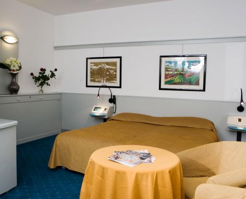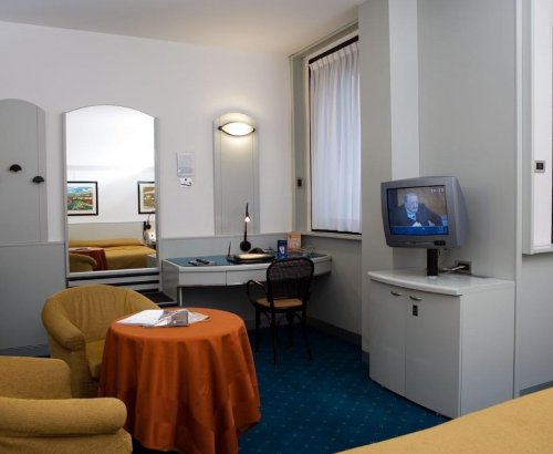 L'hotel dispone di 80 camere insonorizzate e completamente rinnovate, dotate di ogni comfort: telefono, aria condizionata, radio, TV color satellitare, cassaforte, frigobar, connessione a Internet, bagno privato.