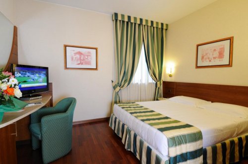 L'Hotel dispone di 86 camere elegantemente arredate (di cui alcune con parquet), dotate di aria condizionata, insonorizzazione, connessione a Internet, TV color satellitare, Pay-TV, frigobar, cassaforte, bagno privato con asciugacapelli. Alcune stanze dispongono di vasca idromassaggio.