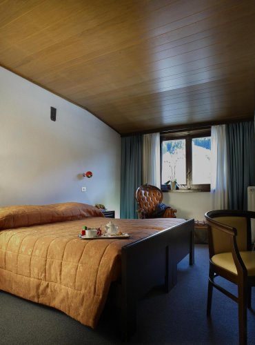 Le camere sono arredate in tipico stile montano e dispongono di telefono, TV color, frigobar, collegamento Wi-Fi a Internet gratuito, cassaforte, servizi privati con asciugacapelli, accappatoio, ciabatte, set di cortesia.
