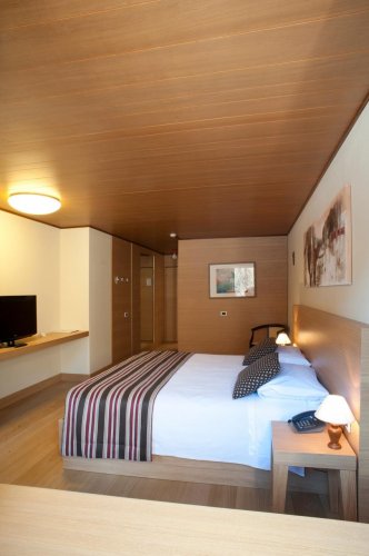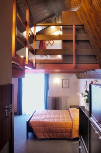Alcune camere sono mansardate e accentuano ancor più lo stile montano.