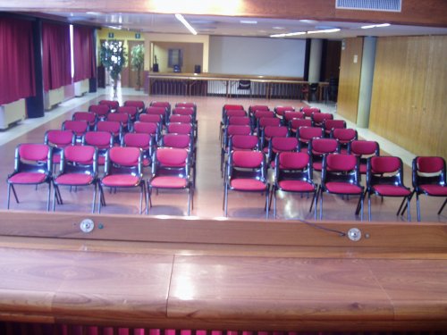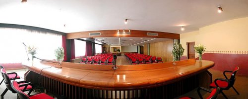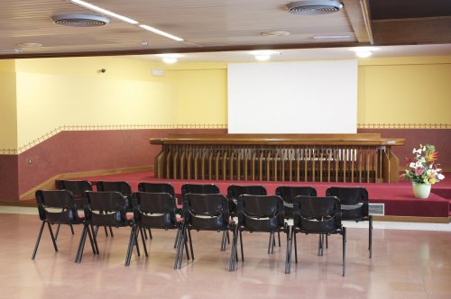 La sala riunioni ha una capienza massima di 200 persone ed è dotata di materiale audiovisivo con connessione Wi-Fi a Internet.