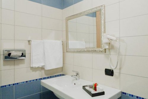 Le camere, dalla linea moderna ed elegante, sono dotate di TV color satellitare, connessione Wi-Fi a Internet, telefono con linea diretta, cassaforte, aria condizionata, riscaldamento e bagno privato con doccia e asciugacapelli.