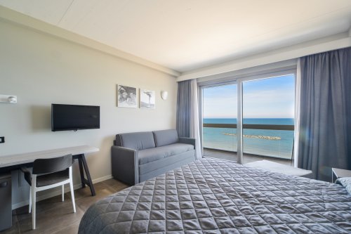 L'albergo dispone di 111 camere: 59 Classic (di cui 4 comunicanti), 46 Superior (di cui 12 camere comunicanti) e 6 Family, tutte con possibilità di vista fronte mare.