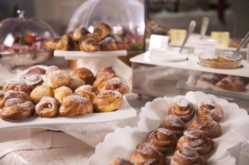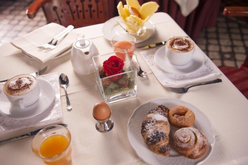 Gli ospiti potranno gustare deliziose torte e crostate fatte in casa, speciali plumcake dello Chef, croissant caldi, ricca scelta di marmellate, yogurt, cereali, muesli, succhi di frutta, frutta fresca o sciroppata, vari tipi di pane tipico, prosciutto, formaggio, uova.