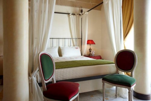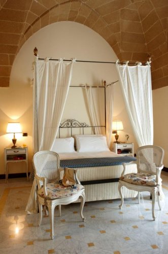 - Junior Suite: camere matrimoniali o triple con bellissimo letto a baldacchino, interni in pietra leccese e carparo. Molto luminose, sono complete di ogni comfort.