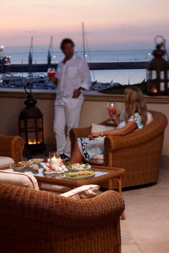 - Grand Suite: distribuite su due piani, al piano inferiore sono disponibili con salottino, divani in pelle, comode poltrone, TV color LCD, minibar, bagno privato, balcone con vista sul mare o sul corso principale di Gallipoli.