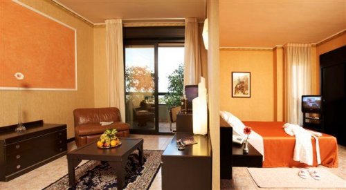 Completamente insonorizzate, le stanze sono dotate di grandi vetrate luminose (con possibilità di balcone), connessione ADSL a Internet, TV color satellitare, Sky TV, minibar, telefono con linea diretta, Room service, Servizio sveglia, aria condizionata regolabile, serrande elettroniche completamente oscuranti, cassaforte, scrivania, Servizio Lavanderia, bagno privato con doccia o vasca, asciugacapelli, accappatoio e pantofole.
