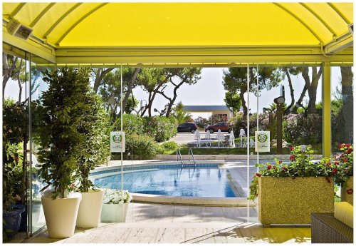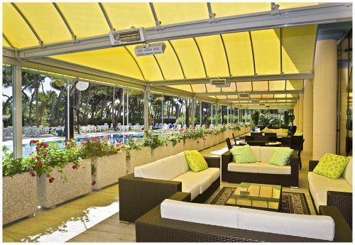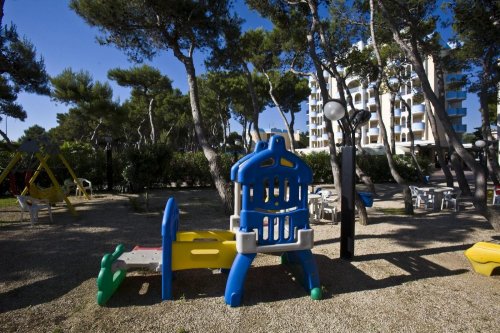 La struttura, immersa in una verdeggiante pineta, è la cornice ideale per una vacanza all’insegna del comfort e del relax, dotata di piscine, parco giochi, spiaggia privata, eccellente ristorante, servizio animazione, servizio noleggio biciclette, spiaggia privata di fronte all'hotel, campo da beach volley, tavolo da ping-pong, tavolo da biliardo e noleggio pedalò in spiaggia, parcheggio esterno e garage.