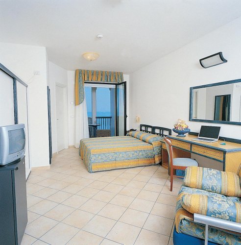 L’albergo dispone di ampie camere arredate con cura, tutte dotate di balcone con vista mare o collina, TV color satellitare, telefono, cassaforte, aria condizionata autonoma, minibar, connessione Wi-Fi gratuita, serrande elettriche, bagno privato con doccia e asciugacapelli.