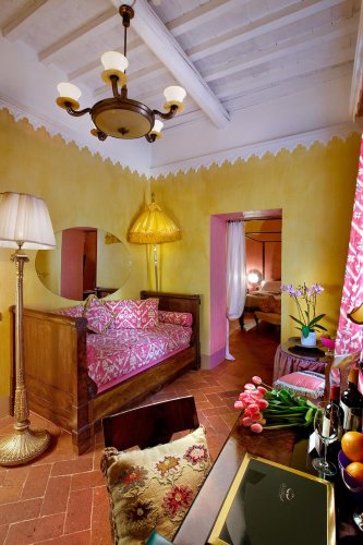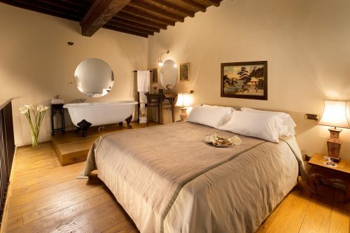 L'eleganza e la ricercatezza degli interni, che si ispirano ai viaggi dello scrittore Bruce Chatwin, si sposano amabilmente con lo stile del Palazzo ottocentesco, dando origine a un'atmosfera speciale e carica di suggestioni.