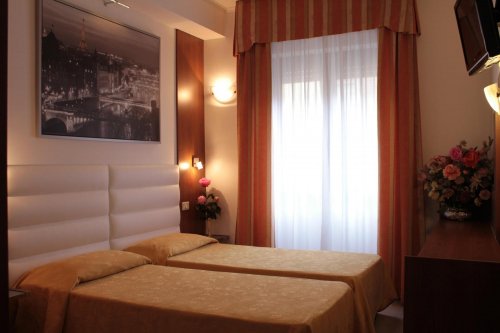 L'hotel dispone di 32 camere completamente insonorizzate, tutte dotate di TV color satellitare, telefono diretto, cassaforte, connessione Wi-Fi a Internet, bagno privato con asciugacapelli.