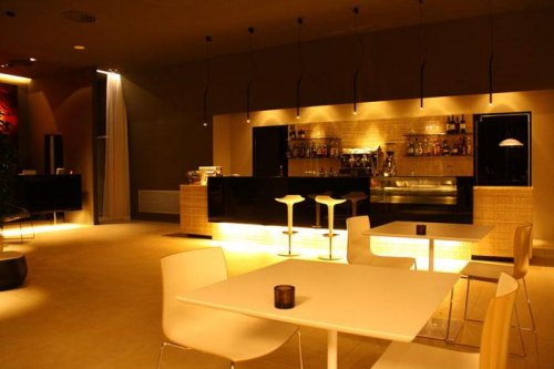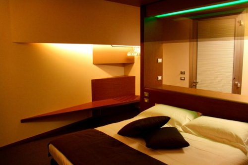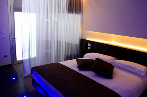 La qualità degli arredi - nelle camere come nelle aree comuni - è sottolineata dai particolari giochi di luce e dagli accostamenti cromatici ricercati.