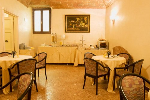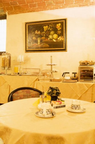 Nella caratteristica Sala per le colazioni viene servita un ricco buffet con pane fresco, yogurt, cereali, marmellate, torte, biscotti, croissant, frutta fresca, salumi, formaggi, e tradizionali bevande calde.