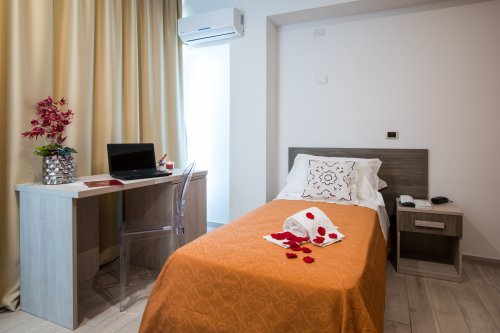 Tutte le camere dell'Hotel, disposte su tre piani sono dotate di aria condizionata e wi-fi gratuito e bagno privato con doccia.